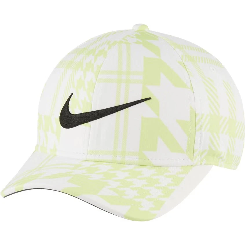 The Nike Aerobill Classic 99 Open Print Performance Golf Cap has been constructed from 4-way stretch fabric in a 6 panel design that is both comfortable and durable while Nike Aerobill technology and the mositure wicking sweat band provide unmatched breathability & a dry, comfortable fit. The Nike swoosh logo provides an authentic tour look.