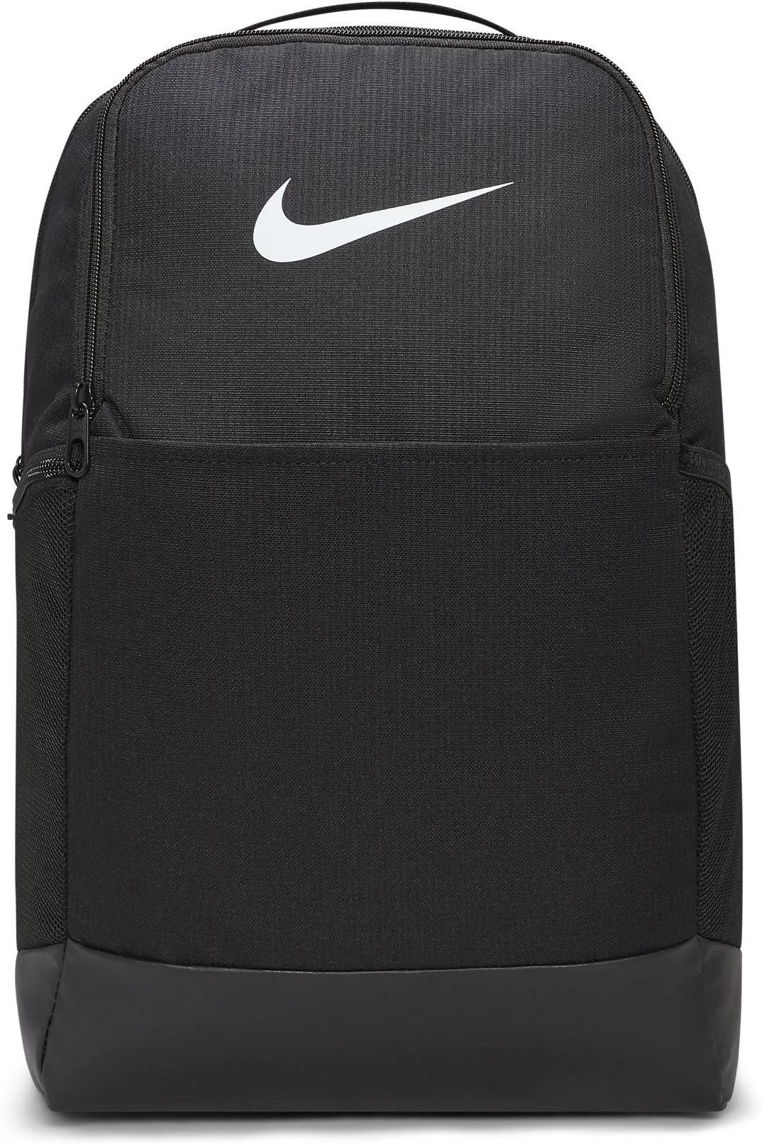 The Nike backpack is smart and functional. It has side pockets with a main zip pocket.