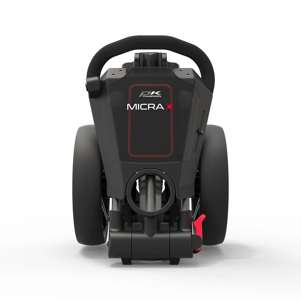 The new Powakaddy Micra is a stylish lightweight and compact push trolley with a simple folding and unfolding mechanism. The clever two-step folding system ensures the Micra folds down compactly to fit into the smallest of spaces. Perfect for when you need that extra room.